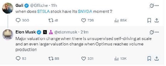 一位特斯拉投资者在社交平台X上询问马斯克:“特斯拉股票何时能迎来它的‘英伟达时刻’?”