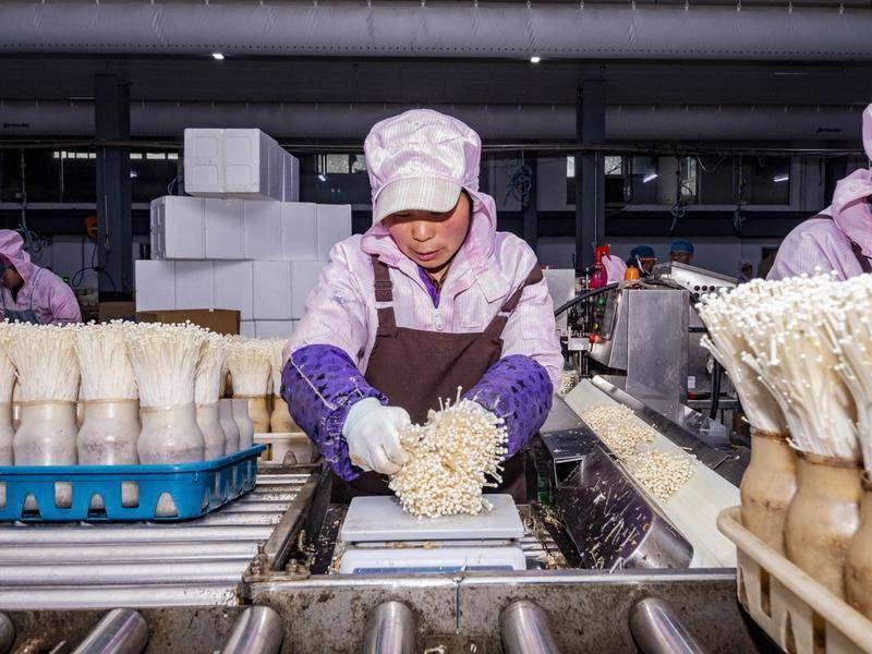 金针菇自动打捆流水线。余军摄
