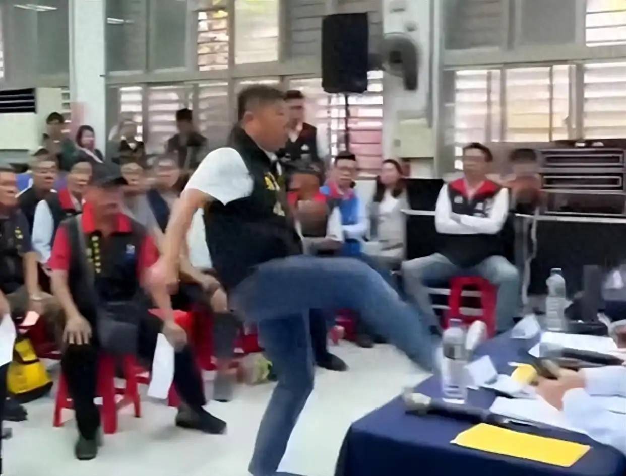 傅崐萁日前参与主办“马太鞍溪堰塞湖溃坝灾后重建特别条例”座谈会,张峻以“未通知灾民”为由,率众去会场踹桌子闹场(上图),引发舆论哗然,此举也让蓝绿台面化、尖锐化。